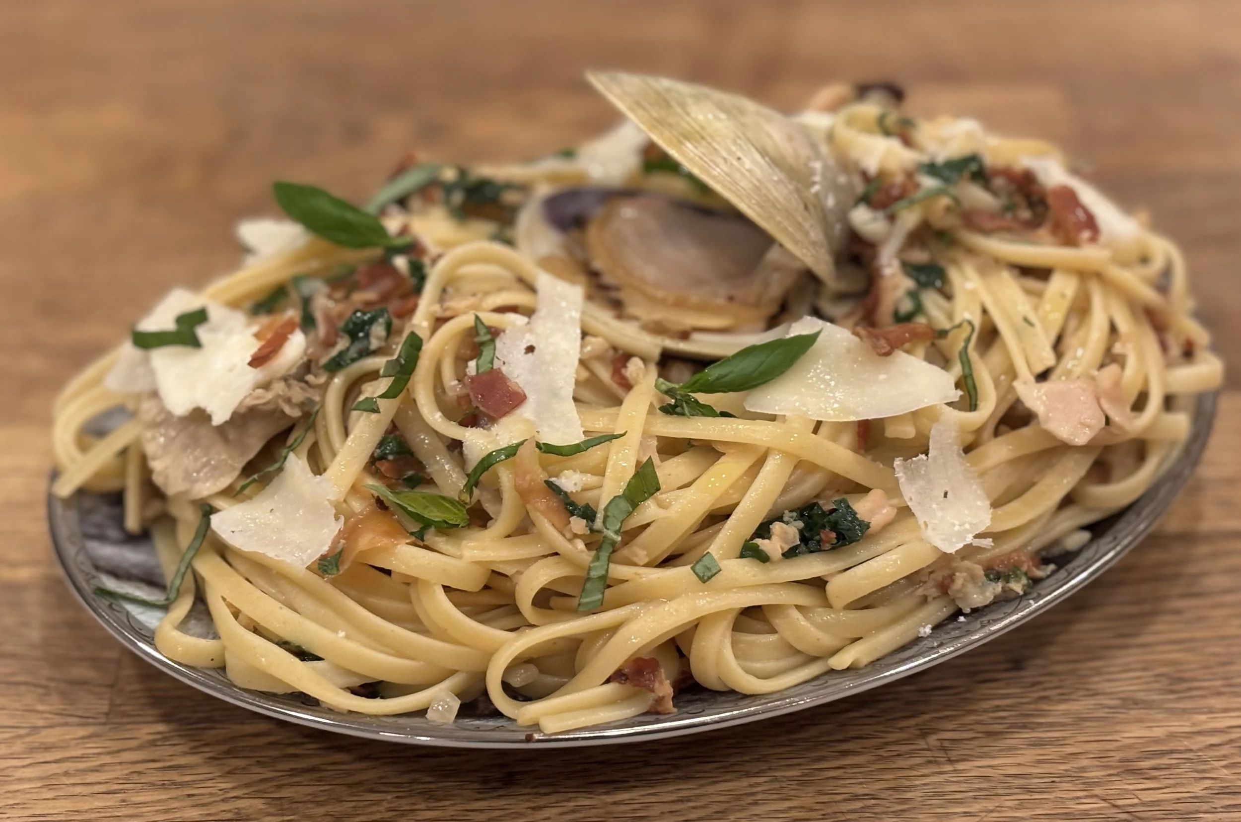 Alright, listen, this is a quality dish. This is not cafeteria pasta, this is not date-night poser food. This is classic. Linguine’s got that smooth glide, you know? Real clean. And the clam sauce, light, not drowning the noodles, little garlic, little oil, just enough brine to let you know the ocean paid rent. You get the clams in there, not hiding, not overdoing it. They pop, they’re tender, they’re saying, ‘Relax, man, we got this.’ It’s confident food. See, heavy sauce? That’s amateur hour. This dish? This says you know what you’re doing. You order this, people think you travel. You probably don’t…but they think you do. It’s simple, it’s smooth, it works. Kinda like me.