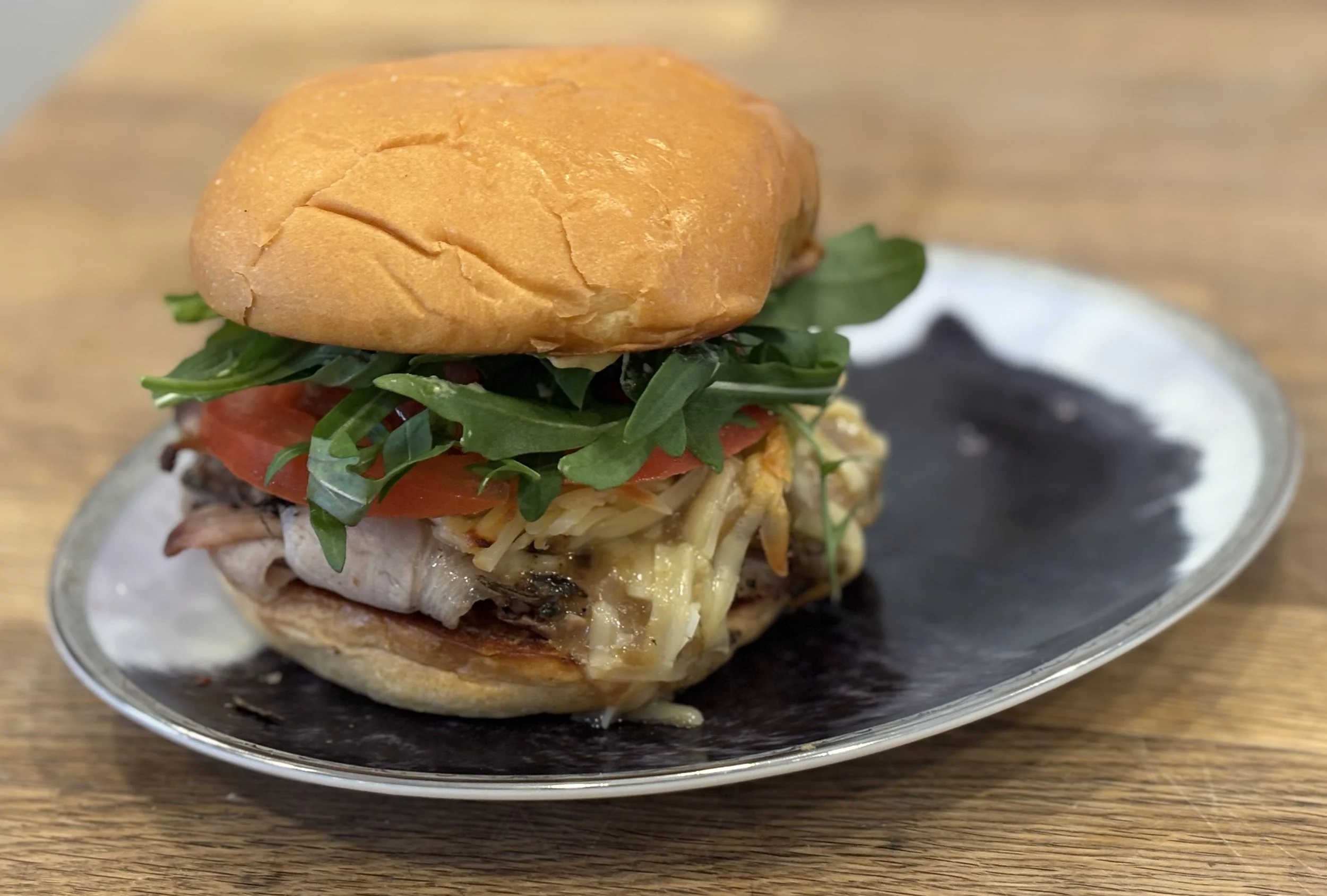 It looks… generous, The pork is rosemary-scented, very proper. Respectable. But then it’s smothered in gravy, like it’s hiding something. Gravy does that, it makes everything feel safe while it weighs you down. The horseradish cheddar is sharp. It doesn’t announce itself at first, but it stings if you’re not paying attention. Dijon does the same—quiet, refined, but absolutely not kind. The tomato and arugula pretend to bring balance. Freshness. Innocence. But this isn’t a light sandwich. It’s rich, overwhelming… the kind that fills every space and leaves no room for escape. You think you’re in control when you order it. You’re not.